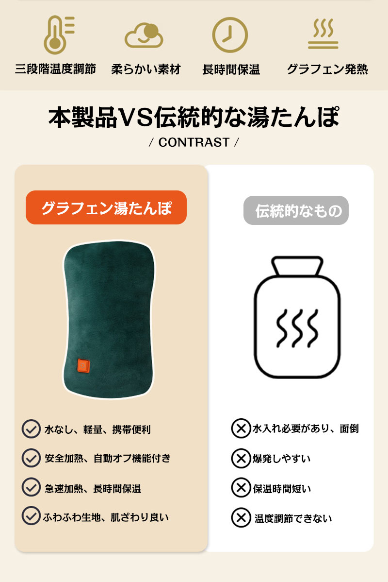 湯たんぽ 充電式 USB 電気湯たんぽ 水入れ不要 無水タイプ 安全 エコ ハンドウォーマー 三段温度調整 ぬくぬく 急速充電 ふわふわ あったか 防寒 寒がり 寒さ対策 防爆 過熱防止機能 軽量 持ち運び便利 自宅 オフィス 旅行 車中泊 手 足 下腹を温め 安全暖房グッズ