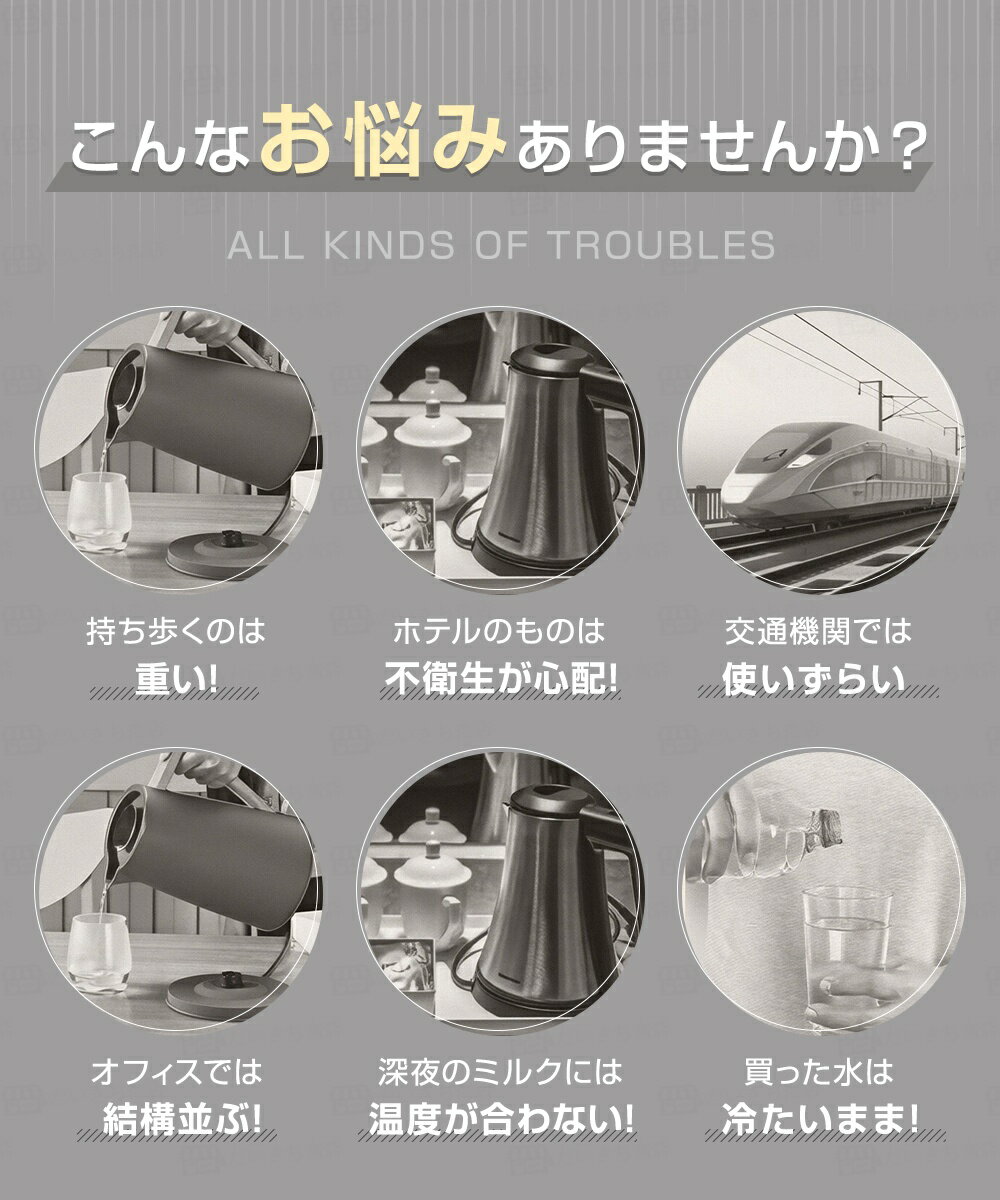 ★613円お得★USB保温できる★ 電気ケトル ポータブルケトル 500ML 304/316ステンレス 二種類加熱方式 6段階温度調節 約6分間急速沸騰 45℃-100℃加熱 自動電源OFF タッチ操作 静音 漏れ防止 300W 節電 480g 軽量 持ち運び 家庭用 子供の調乳 赤ちゃん オフィス用 コーヒー