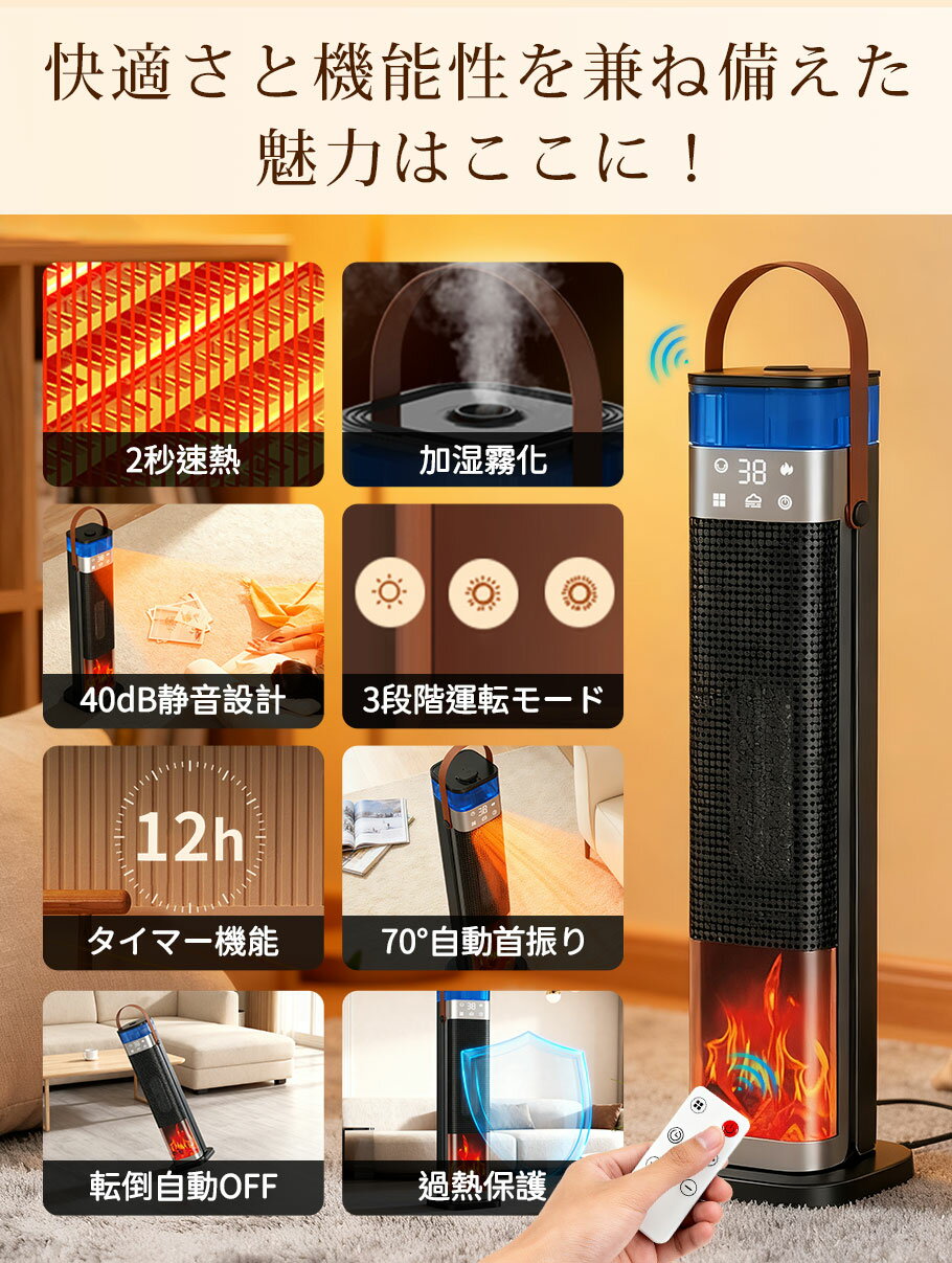 \期間限定!1,000円OFFクーポンで7, 880円/楽天1位【 1年保証】電気ファンヒーター 小型電気ストーブ 加湿機能付き 3段階切替 首振り 省エネ おしゃれ シンプル モダン モノトーン部屋 タイマー機能 足元ヒーター ペット 暖房器具 速暖 過熱保護 1500w